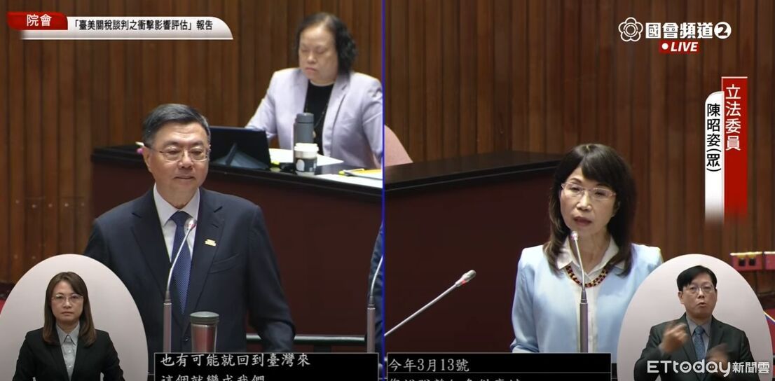 ▲陳昭姿質詢卓榮泰紅色供應鏈相關。(圖/翻攝自國會頻道)