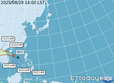 中央氣象署科長劉宇其指出,菲律賓到南海目前是一個大低壓帶,其中已經陸續有些熱帶系統發展起來,位於台灣的西南方約1000公里的外海為熱帶性低氣壓TD17,未來持續往西前進,對台灣沒有直接影響,但預計明天登陸中南半島時,可能發展成下一個颱風。