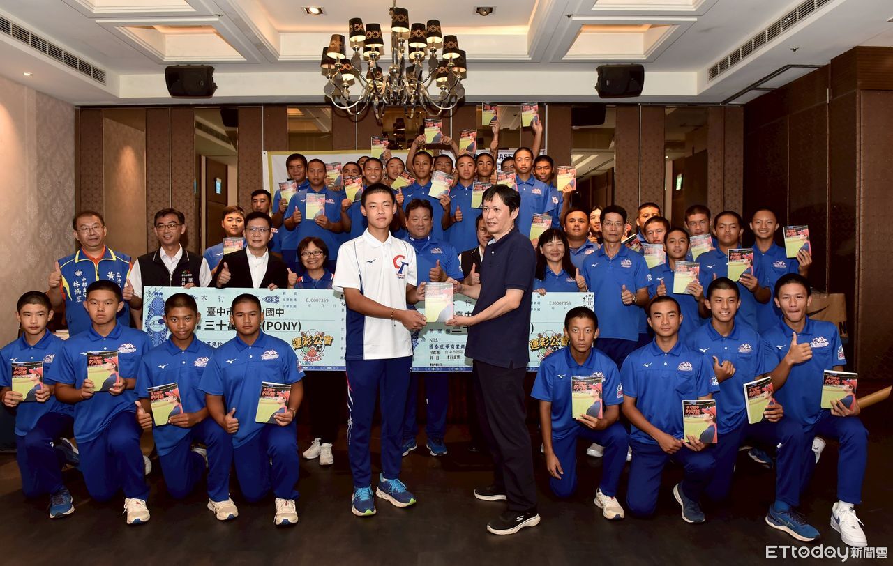 ▲台中市青少棒今年在國際賽場上寫下光榮歷史新頁,運彩公會理事長何昱奇頒發60萬元獎金給球員。(圖/記者游瓊華攝)