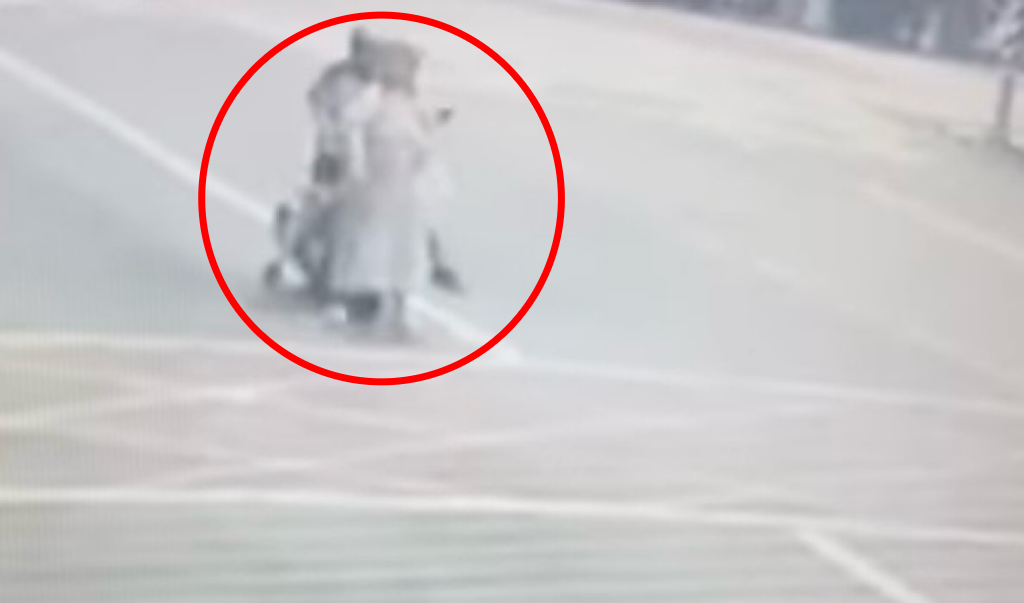 ▲騎士從背後撞婦人,離譜畫面曝。(圖/翻攝自YouTube「WoWtchout-地圖型行車影像分享平台」)