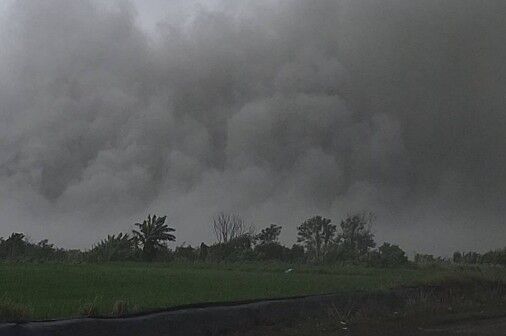 除了暴雨,彰化溪州濁水溪口一帶也揚起驚人沙塵暴,強風捲起河床沙土,形成一片黃霧,場面駭人,能見度迅速降低,民眾行經該路段時紛紛減速慢行。