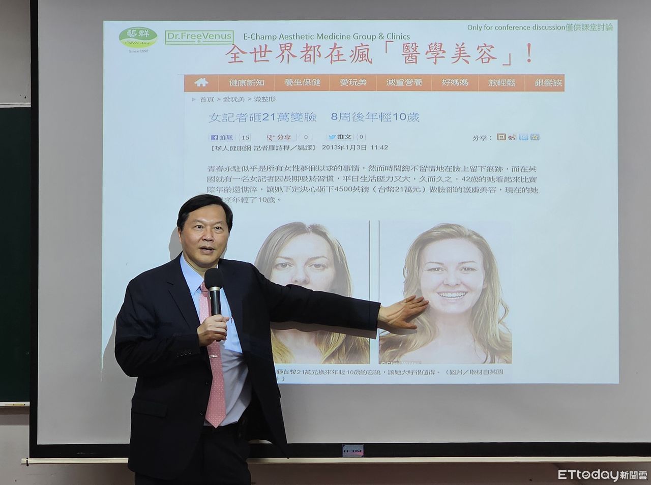 ▲藝群醫學美容集團董事長王正坤醫師於成大企管顧問班分享企業如何避開關稅風暴。(記者林東良翻攝,下同)