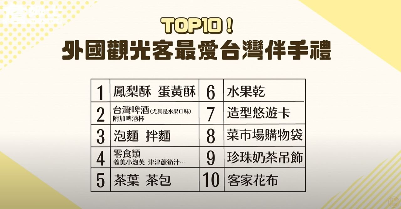 詹姆士最後也說,這就是外國觀光客喜歡的台灣伴手禮前10名,但他相信,絕對不是只有這些東西受歡迎,這就是一個有趣的分享!