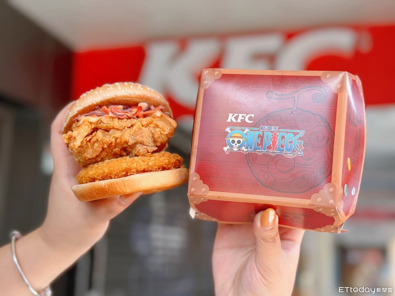▲肯德基聯名航海王推出全新「惡魔果實咔啦海陸堡」。(圖/記者蕭筠攝,下同)