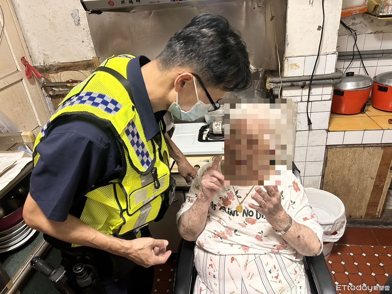 宋、張2人與消防人員小心翼翼將阿嬤攙扶坐上輪椅,當員警詢問家裡還有沒有人時,阿嬤突然開始啜泣,她在這裡居住超過60年,「4個孩子都死了……」,這時現場氣氛瞬間凝結,員警立即輕聲安慰並攙扶阿嬤回房休息。
