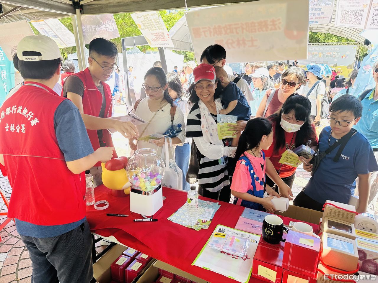 ▲士林分署分署長吳廣莉熱情親切向民眾解說並發放小禮品,加深民眾對反詐與稅務的認知。(圖/記者黃宥寧翻攝)