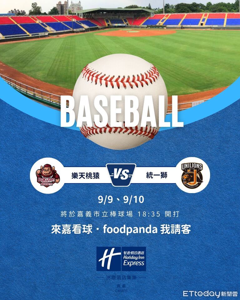 嘉義智選假日酒店表示,9/9、9/10 樂天 vs 統一 兩場賽事即將在嘉義市棒球場開打,因此推出看球、吃美食、住好飯店 專案優惠,即日起~9/8 透過官網預訂 可以享每日最優房價 或 提前預訂優惠,只要市9/8–9/10 任選連續兩晚入住