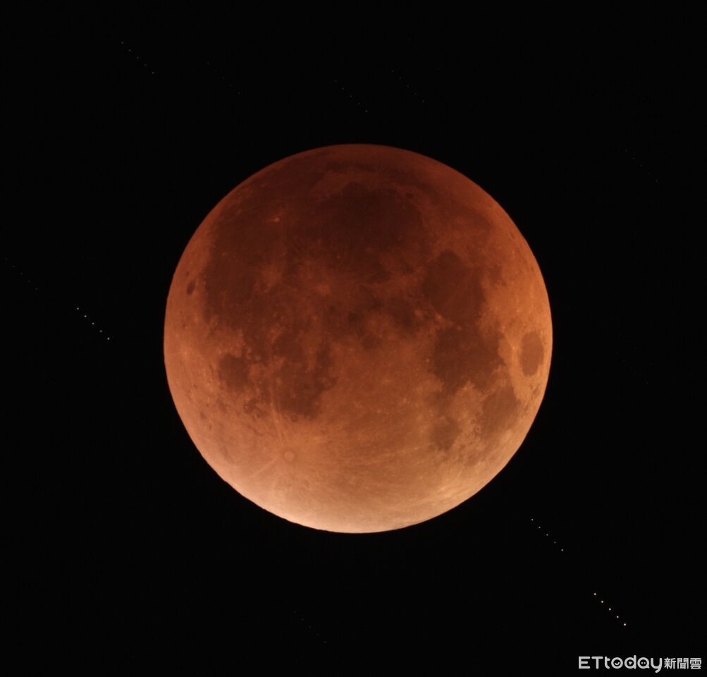 ▲月全食化身紅色血月,吸引千名天文迷齊聚南瀛天文館觀測。(記者林東良翻攝,下同)
