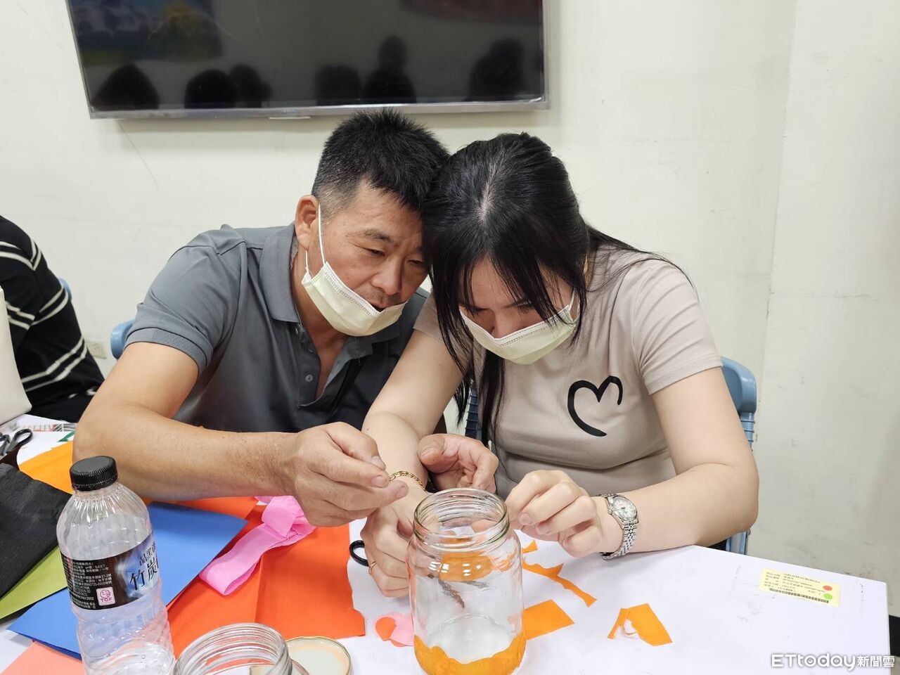 故事說完後,從事藝術工作的童德鴻教導在場新住民夫妻,將日常生活中使用過的玻璃瓶再利用,DIY打造出獨一無二的家飾燈,學員手作過程中,不僅感受創作的樂趣,在作品完成點亮的那一刻,在場學員都驚喜萬分。