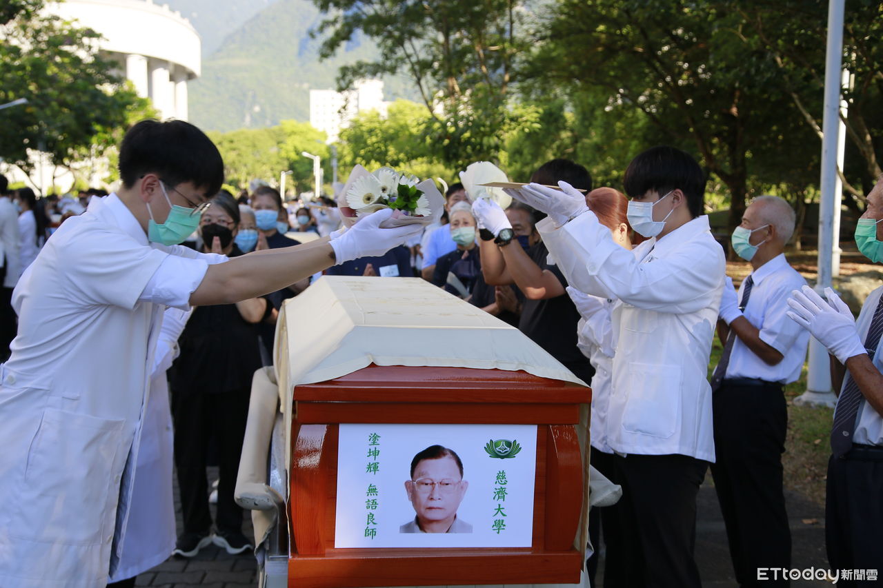 2025年9月慈濟大學醫學生模擬手術課程在12日舉辦送靈、感恩追思暨入龕典禮。當天一早在靜思精舍常住師父引禮下,慈濟大學師長和醫學系五年級學生、衛福部代訓、新加坡南洋理工大學和菲律賓三寶顏雅典耀大學的醫學生一起送別無語良師最後一程。八位無語良師是洪千惠、塗坤輝、張瑞欽、古金龍、官文俊、王褚美珠、黃國義、劉鏡春。