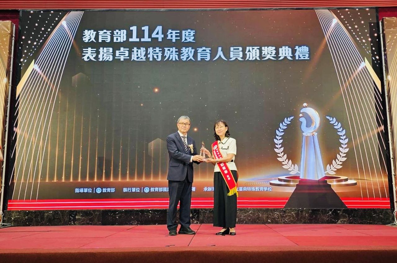 教育部昨(16)日在台南福爾摩沙遊艇酒店舉辦「114年度表揚卓越特殊教育人員頒獎典禮」,新竹市東門國小劉菁華老師獲選,榮獲特教人員的最高榮譽,代理市長邱臣遠肯定劉老師34年來在特殊教育領域的深耕與奉獻,並感謝所有教學現場默默付出的教師們,與市府攜手落實新竹好學,共創友善教育環境。