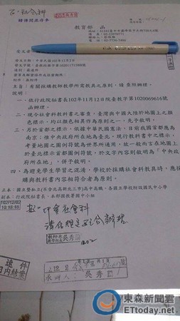 李筱峰上傳的公文內容主旨為「有關採購教師教學所需道具之原則」,說明事項裡卻出現「首都之標示,依據中華民國憲法,目前我國首都應為南京;惟中央政府所在地為台北。」