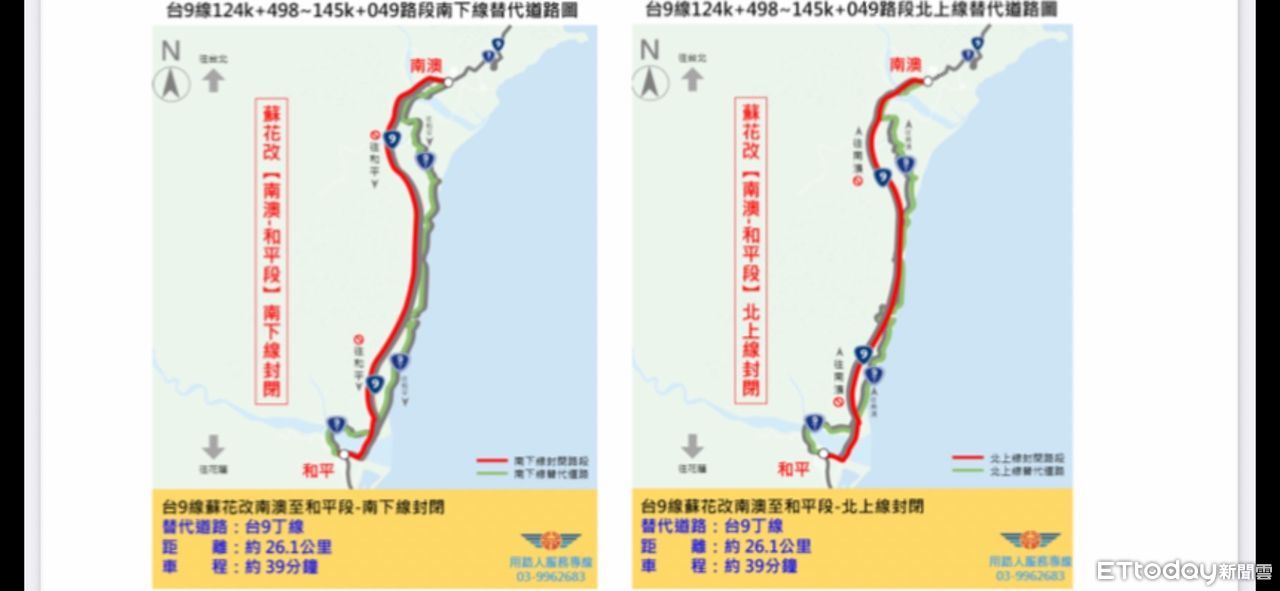 ▲南下及北上方向替代道路示意圖。(圖/記者王兆麟翻攝)