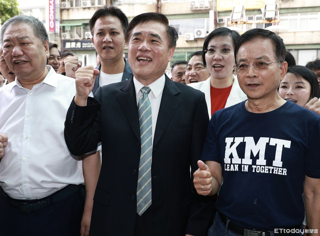 ▲郝龍斌(中間穿西裝者)登記參選國民黨主席 。(圖/記者黃克翔攝)