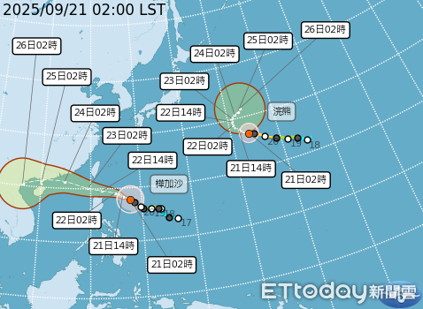 中度颱風樺加沙持續接近台灣,中央氣象署今(21日)日上午8時30分發布海上颱風警報,首波警戒範圍包括台灣東南部海面(含蘭嶼、綠島)及巴士海峽。