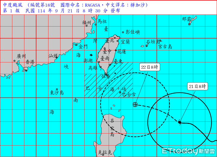 中度颱風樺加沙持續接近,中央氣象署今(21日)日上午8時30分發布海上颱風警報,其暴風圈預計明、後天最接近台灣,且可能在今天白天就增強為強烈颱風,今天下午至周二以強颱等級影響台灣天氣,氣象署預估傍晚至晚間發布陸上颱風警報。