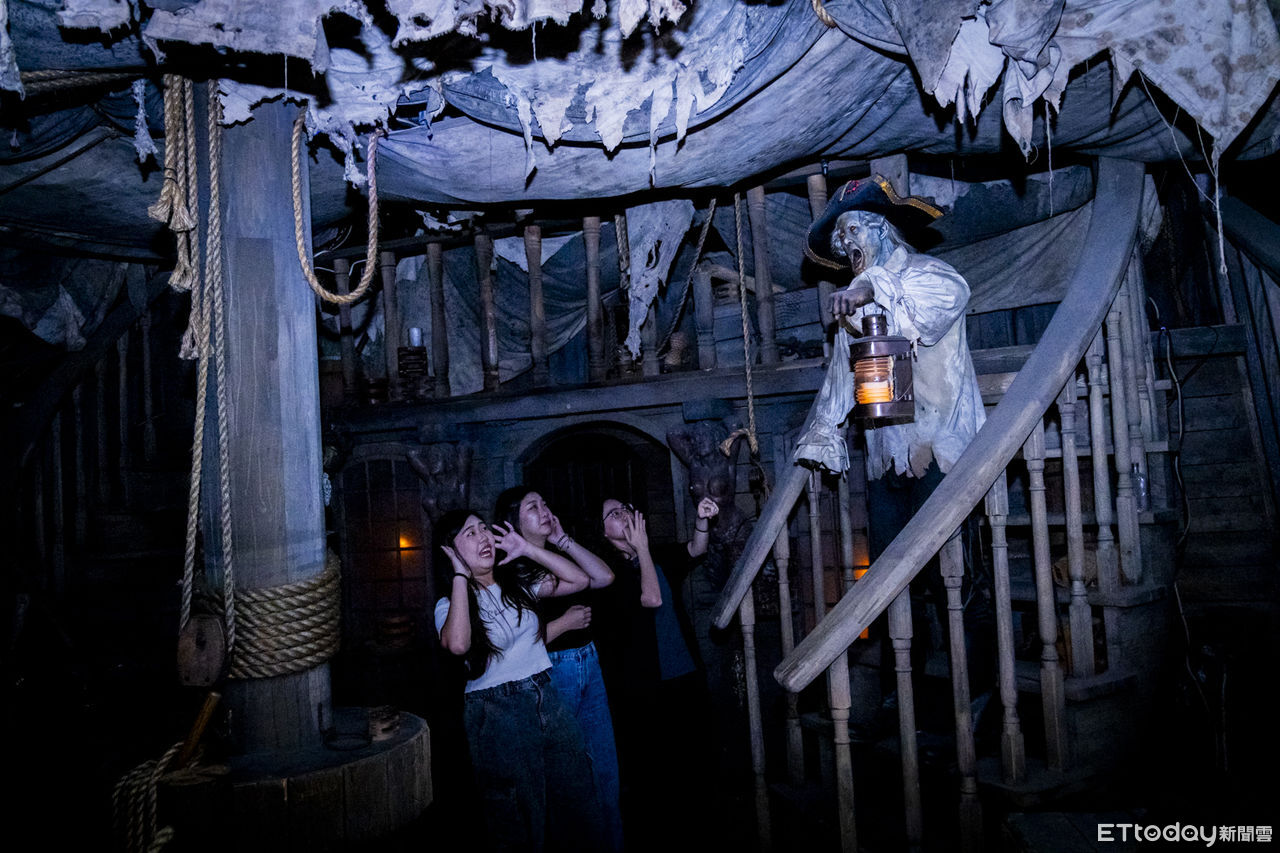 西洋萬聖節即將到來,義大遊樂世界也推出「義大萬聖月」,樂園超人氣設施「5D鬼船」驚嚇指數全面升級,引進AI換臉技術,遊客走進鬼船內,大螢幕就會偵測面孔,將遊客的臉與螢幕上的鬼怪臉孔互換,每個人都有機會成為恐怖故事主角。