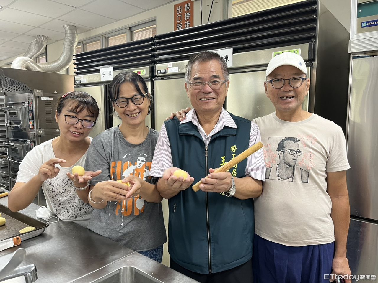 ▲台南市勞工局於曾文園區舉辦烘焙課程,學員親手製作蛋黃酥與小月娘。(記者林東良翻攝,下同)