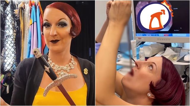 美國紐約市街頭藝人敏絲基(Gin Minsky)表演吞劍已近10年,她日前接受喉鏡檢查,拍下18英寸(約46公分)長刀刃穿越喉嚨、進入食道的「第一視角」影片,如今在社群媒體爆紅,震驚不少網友。