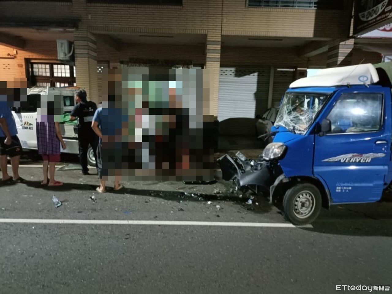 這起事故發生在昨晚19時55分許,根據曝光的監視器影像,當時61歲曾姓男子駕駛小貨車行經橋頭區甲昌路時,整輛車直直猛撞上不慎停放在路旁的貨車,再導致該車往前推撞前方停放的另一部小客車及兩輛機車,現場共計路邊4輛車輛受損。