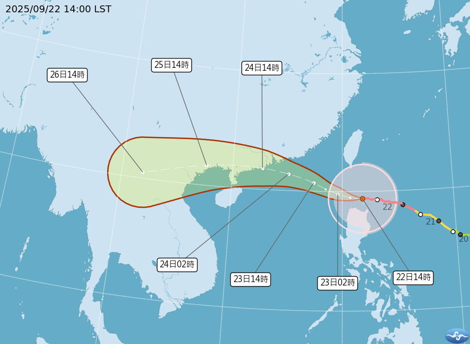 ▲強烈颱風樺加沙路徑潛勢預報。(圖/氣象署)
