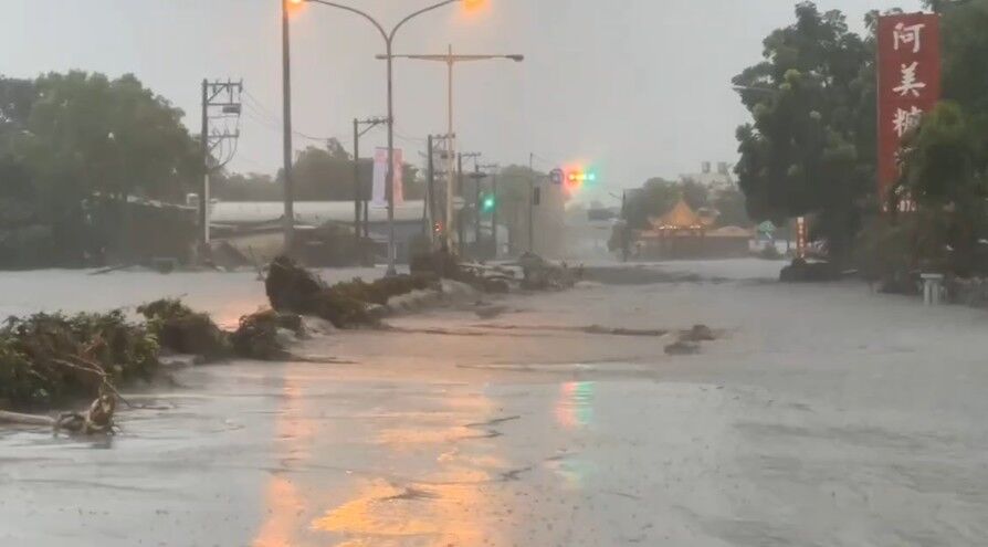 ▲花蓮光復鄉街道被洪水淹沒。(圖/中央災害應變中心提供)