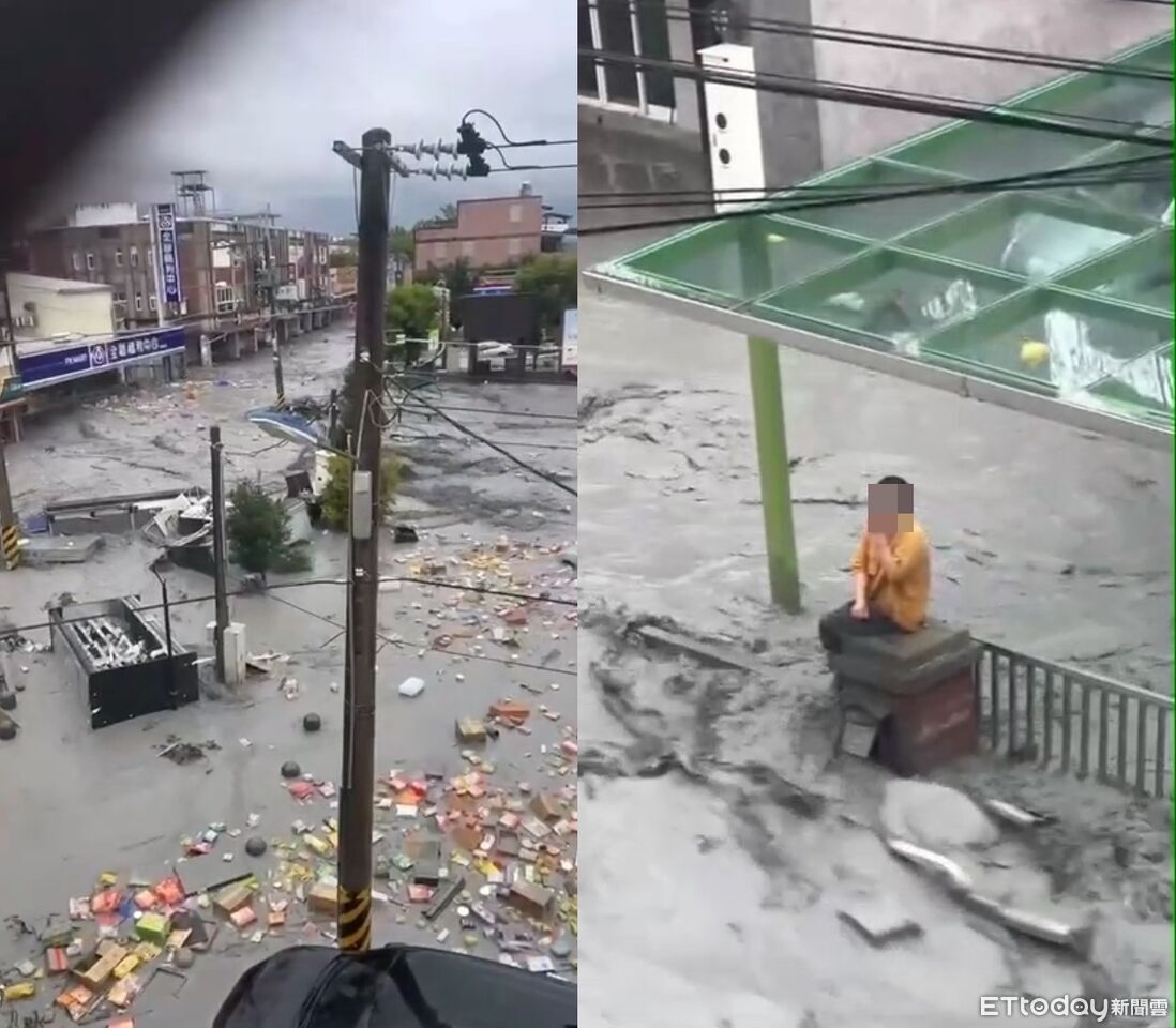 ▲颱風外圍環流帶來豪雨,花蓮馬路成河。(圖/地方中心翻攝)