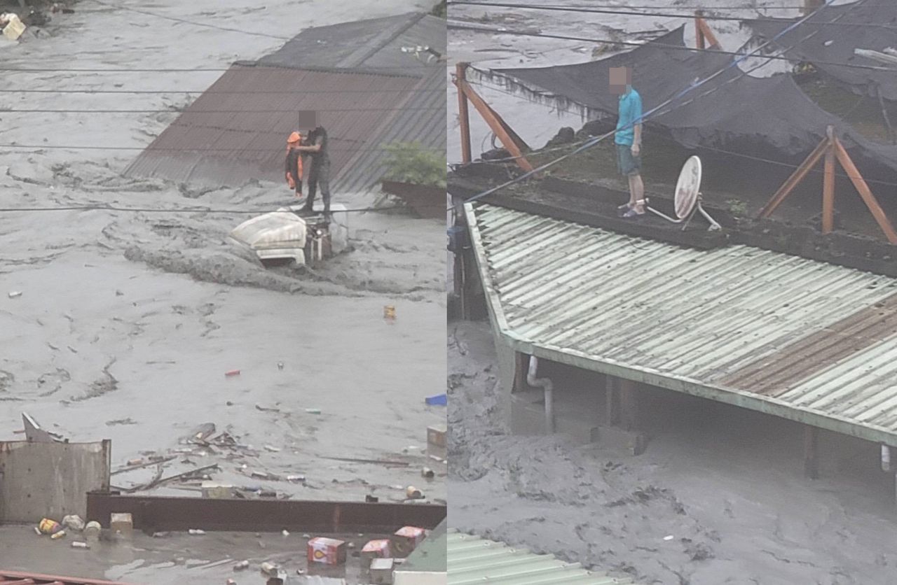 ▲樺加沙颱風襲台,花蓮馬路成河,許多汽車被洪水沖走。(圖/翻攝自記者爆料網)