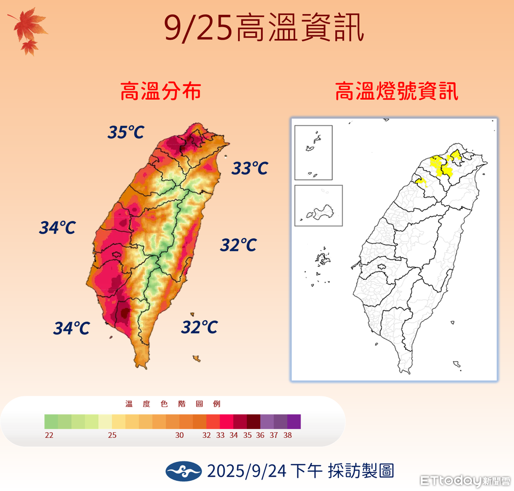 溫度方面,林定宜指出,未來一周仍高溫炎熱,各地都有32至35度,明天大台北、桃園及新竹有局部36度以上高溫。