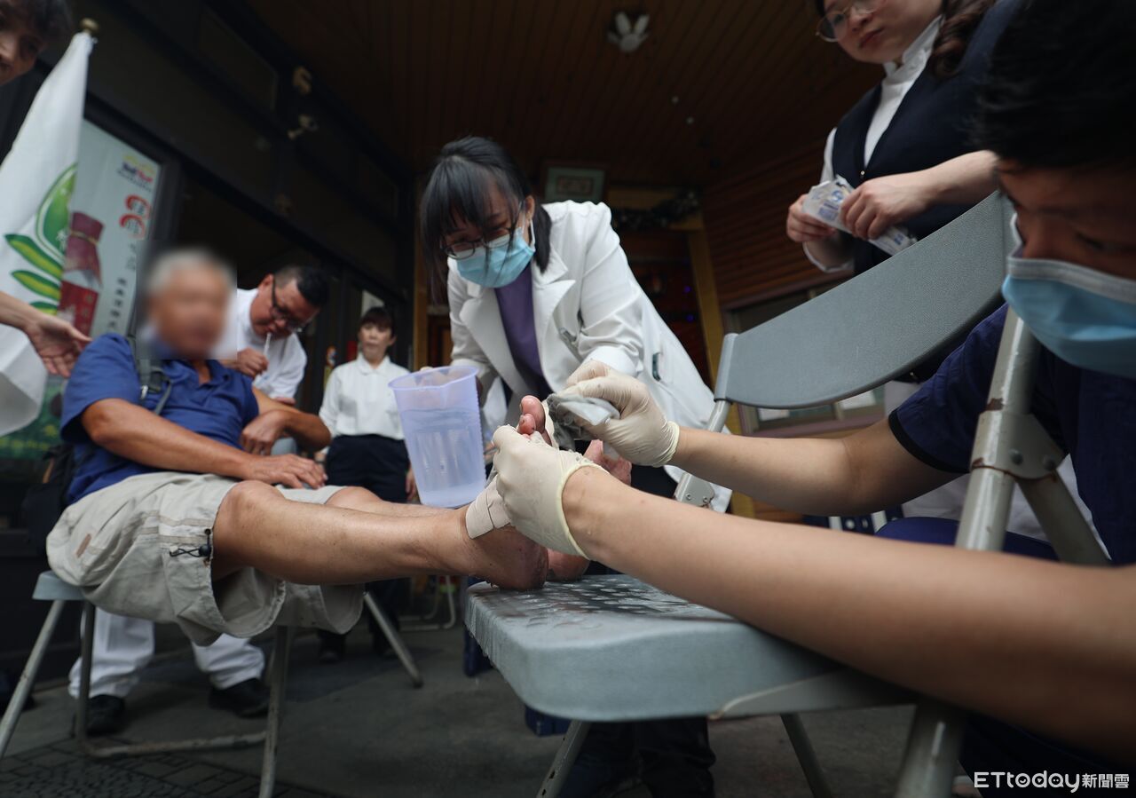 ▲▼救災志工手指被門夾傷,由花蓮慈院醫療團隊協助清理、包紮,並施打破傷風疫苗。
