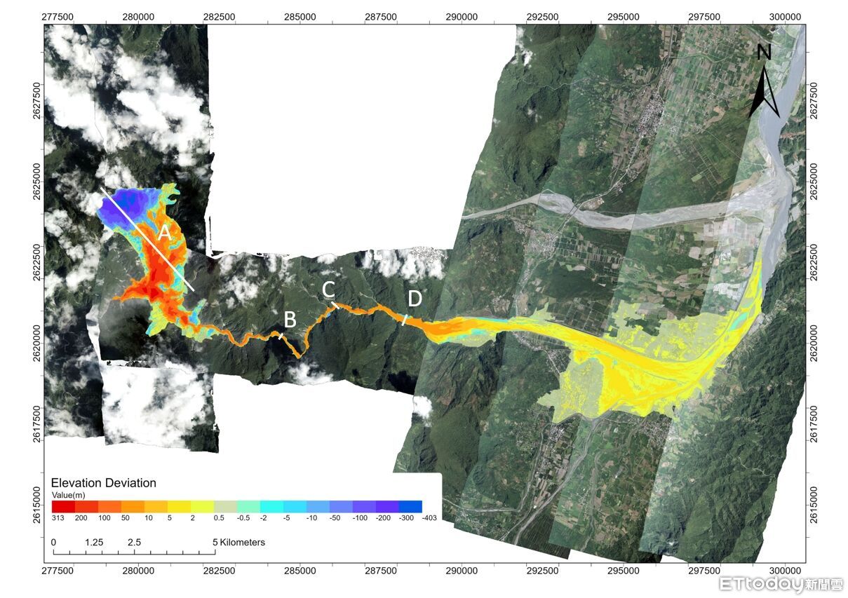 航遙測分署指出,根據數據顯示,形成此次堰塞湖元凶的山體崩塌,最大深度達到403公尺,規模相當驚人,而中下游河道也有大量土石堆積,河床高度較災前高出40至50公尺。