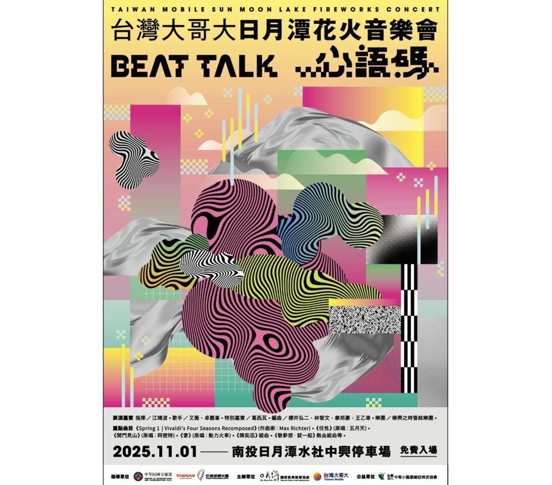 「2025台灣大哥大日月潭花火音樂會」將於11月1日盛大登場,邀請歌手艾薇、卓義峯、金曲歌王葛西瓦同台獻唱,更首度雙點施放最長450秒、180度環繞花火,結合AI互動打造跨界體驗。今年以「心語碼 Beat Talk」為主題,從Bit延伸至Beat,象徵科技訊號化作音樂節奏,傳遞情感,並邀請到金獎設計師楊士慶打造專屬主視覺,融合自然與科技語言,透過像素與色彩轉化聲音情感。