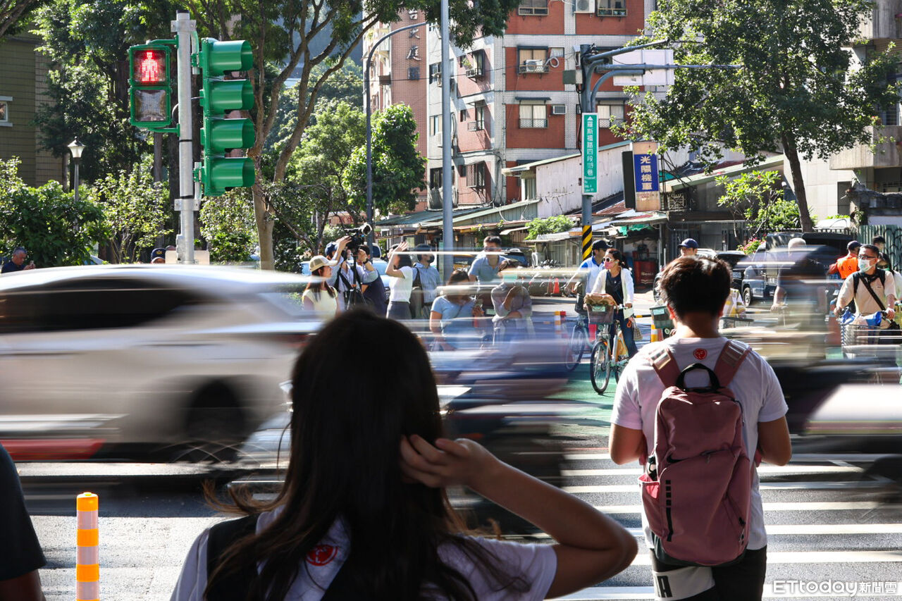 ▲公館圓環拆除後車多擁擠,行人穿越道號誌時間過短。(圖/記者林敬旻攝)