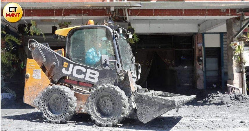 原PO說到,第2天他滑Threads才知道有一群人在林田幹線幫忙,而他實際走訪後,注意到有2台山貓來支援開路,山貓先把淤泥鏟到兩側,再藉由人力把土往外推,「因為土堆真的太高了」。