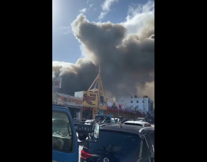 ▲花蓮吉安黃昏市場旁工廠火警,火勢猛烈、濃煙密布。(圖/翻攝自Facebook/魏嘉彥)