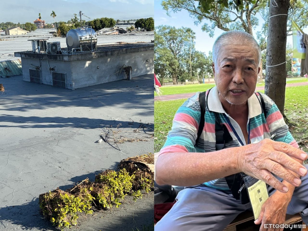 還好陳阿伯尋到空隙,不想就這樣等死,深吸一口氣後潛入水中,從門口游了出去。不過,門外水流更是湍急,連站都站不穩,他到處尋找可以抓的東西,最後被他找到一根2公尺長的木棍,他就抓著木棍,一邊用棍子捶地輔助,游到對面30公尺外的堤防爬上去避難。
