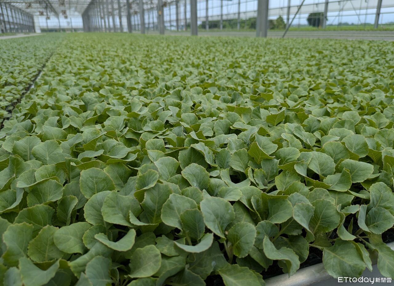 ▲農糧署統計,高麗菜(甘藍)種植面積連續40天達到紅燈警戒值。圖為育苗場培育甘藍穴盤苗情形。(圖/農糧署提供)