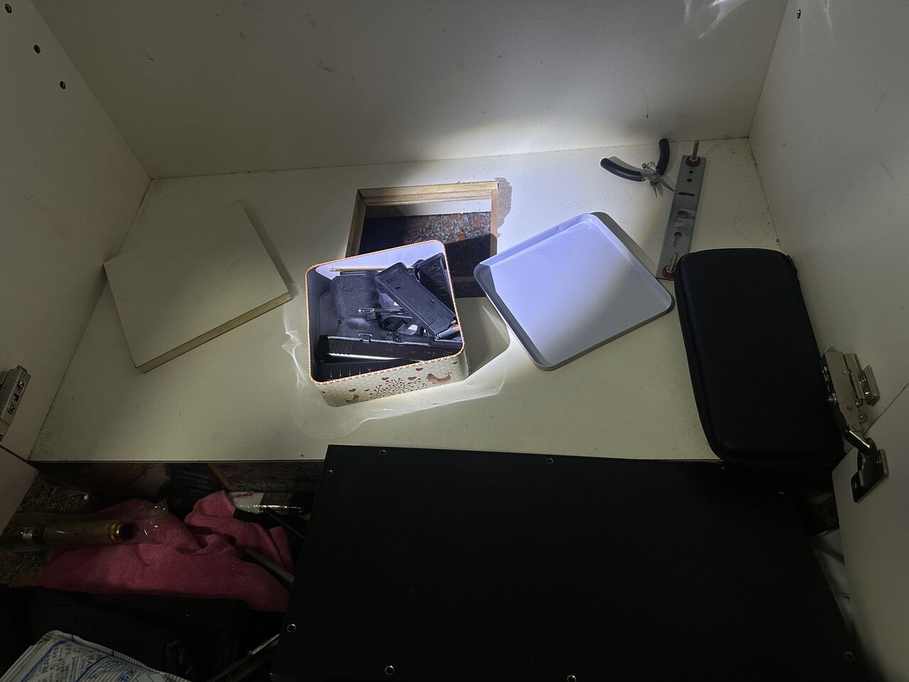 海巡署偵防分署彰化查緝隊接獲毒品槍械案,一名54歲周姓毒蟲藏匿在彰化縣某鄉間一處租屋處,擁槍自重、當專案小組破門而入時,周男驚慌失措當場遭逮,其藏匿罪證的手法更是令人咋舌,將槍械彈藥與百公克的安非他命及海洛英等毒品分別隱藏在櫥櫃特製的暗格夾層中,企圖規避查緝。