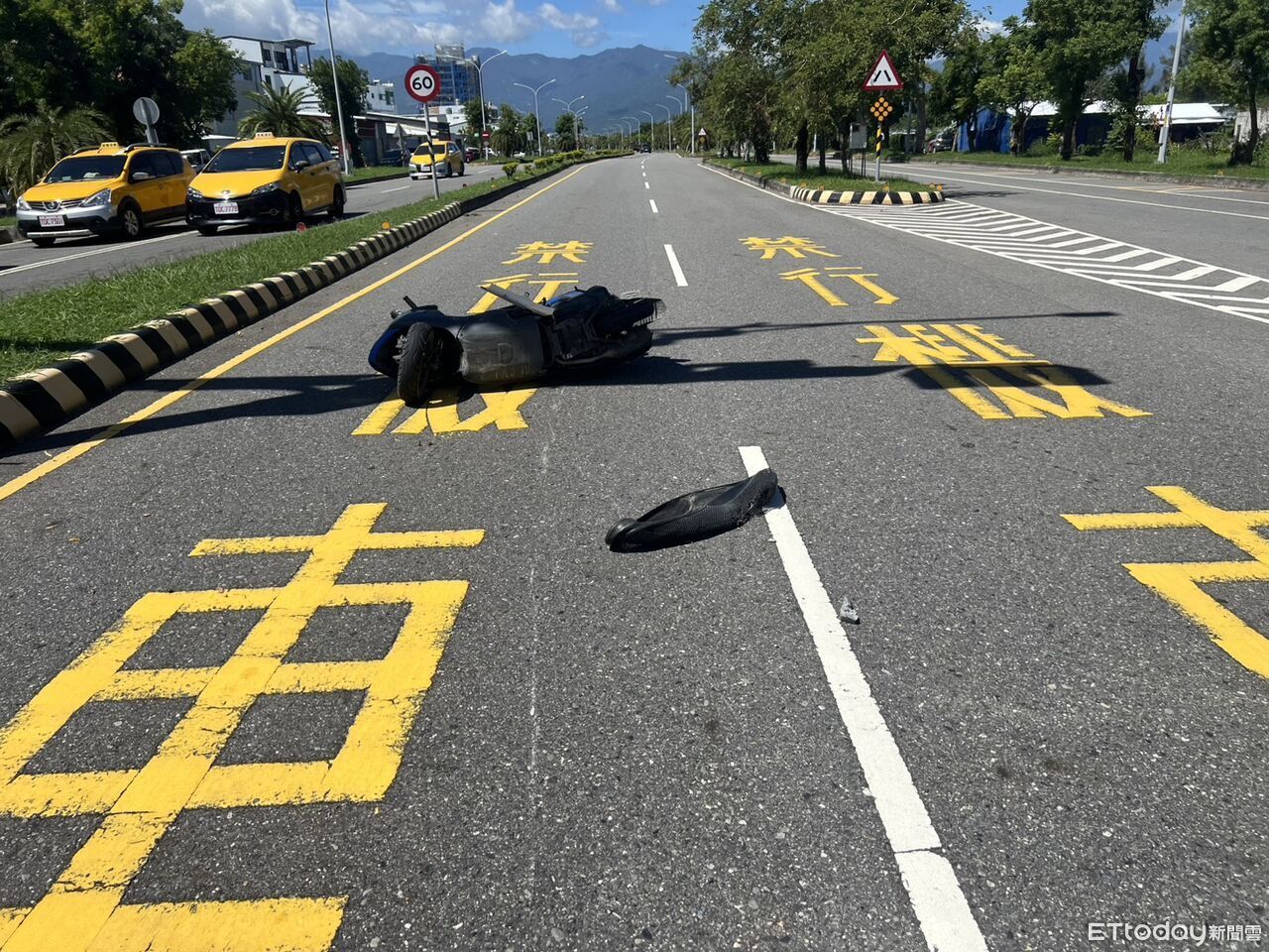 ▲台東騎士從慢車道左轉,遭快車道的轎車衝撞身亡。(圖/記者楊晨東翻攝,下同)