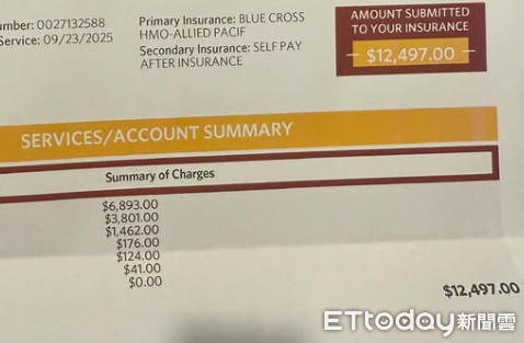 她無奈直呼,「這趟原是為了探親與照顧開刀的家人,沒想到媽媽反而自己先進急診,幸好她有Blue Cross保險,目前僅先付了50美元(約新台幣1528元)的掛號費。」
