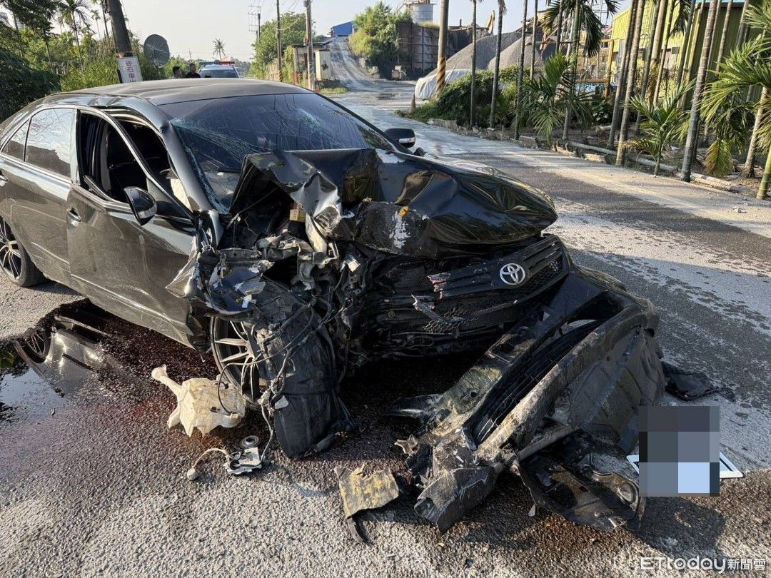 還差1個月才滿18歲的李姓男子今(8)日清晨駕駛該黑色自小客車返家途中,行經竹田鄉平安路段,因閃避其他車輛不慎自撞路旁電線桿,車頭受損,所幸現場無人受傷。監視器也錄下案發時狀況。