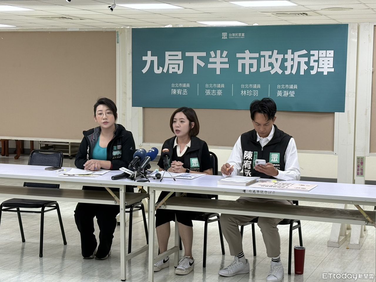 ▲民眾黨台北市議會黨團「九局下半,市政拆彈」記者會。(圖/記者鄭佩玟攝)