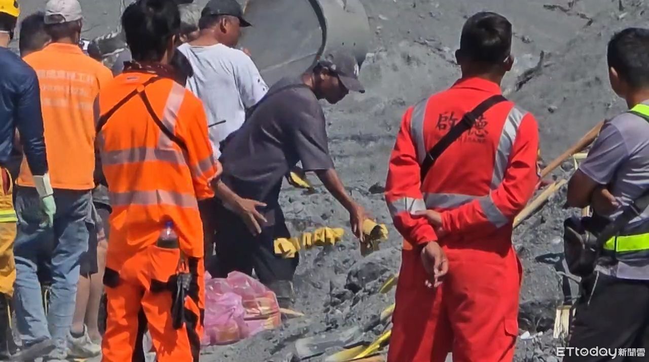 由於車體嚴重變形,為避免破壞遺體,搜救人員找到汽車所在地後,改以人工方式拿鏟子慢慢開挖,並使用油壓剪小心破壞車體,現場由該砂石場出動的怪手協助挖掘,挖出的坑洞約近2公尺深,一旁還有人在燒金紙,希望搜救人員盡快將遺體帶出。