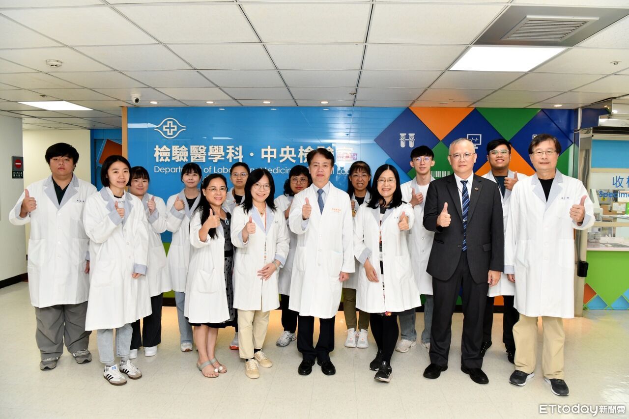 ▲基隆長庚吳俊德院長與檢驗醫學科全體同仁合影。第1排左起:吳俊德院長(左4)、檢驗醫學科王碧娥主任(左5)、管理部吳國鳴主任(左6)。(圖/記者郭世賢翻攝,下同)