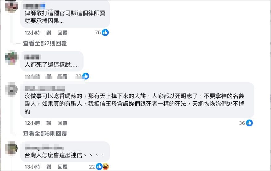 她指控廟方利用「王母娘娘」的名義,迫使母親借款給其他信徒,甚至向親友籌款1.6億,最後還抵押多間房屋。母親去世後,孫姓姊妹竟在LINE群組留言「度化聽不進去,母娘說一切公平」,疑似暗指母親的死為天命,讓人心寒不已。