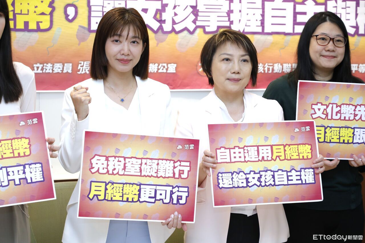 ▲民進黨立委范雲、張雅琳召開「慶祝台灣女孩日-發放月經幣,讓女孩掌握自主與權利」記者會。(圖/記者湯興漢攝,下同)