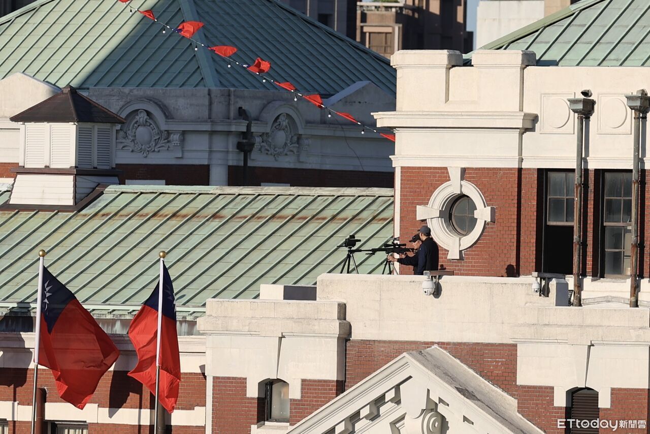 ▼雙十國慶大會總統府前廣場進行場地佈置,而狙擊手也現身,高規格維安。(圖/記者徐文彬攝)