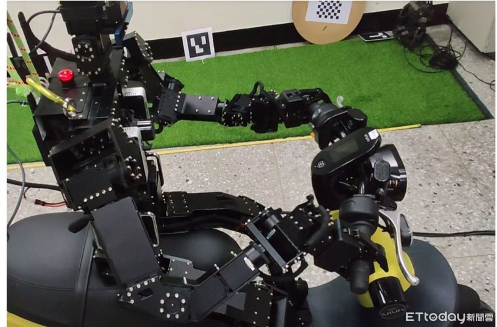 ▲台師大團隊透過深度學習,讓人形機器人成功挑戰騎機車。(圖/台師大提供)
