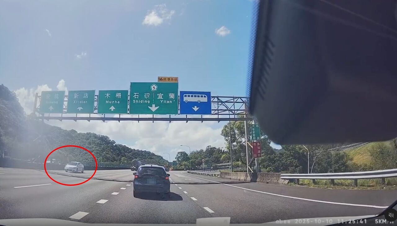 10日上午約11點,一名駕駛人在南港系統準備進入國道5號前往宜蘭時,突然目睹驚險一幕。他在社群平台Threads上發文,「本來以為自己看錯,還以為那輛車是正常南下的,結果才發現它竟跑到北上超車道,還逆向開!」網友形容當時場面十分驚險,來往車輛紛紛閃避,連他自己都捏了一把冷汗,其他人看到影片則譏笑留言「從從容容、游刃有餘」。
