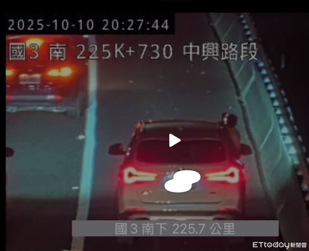國慶煙火昨晚自8時準時施放、至8時40分結束,從相關國道3號監視器畫面看來,8時26分時在中興路段南下225K+730處路肩,就有2台車輛開啟閃黃燈暫停,其中一台副駕駛座的乘客甚至將車窗降下、伸出頭手,狀似在欣賞美麗的煙火,險象環生。